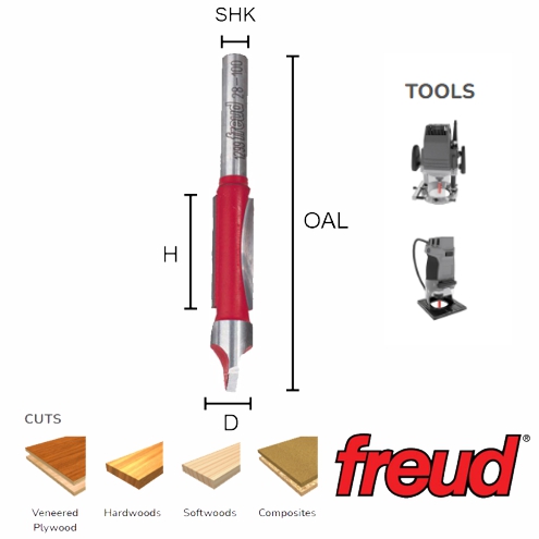 | Freud-28-100 | Panel Pilot Router Bit 2FL 3/8" Dia x 1"H x 3"OAL x 1/4"Shk | 3/8" | 1" | 2 | 3" | 1/4" | 24000 | Yes |